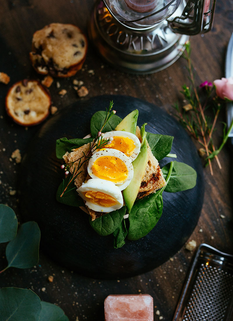 (Avokado püresi, çırpılmış labne, kızarmış ekmek, çırpılmış yumurta, roka, parmesan zest ve cips ile.)